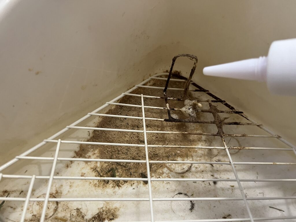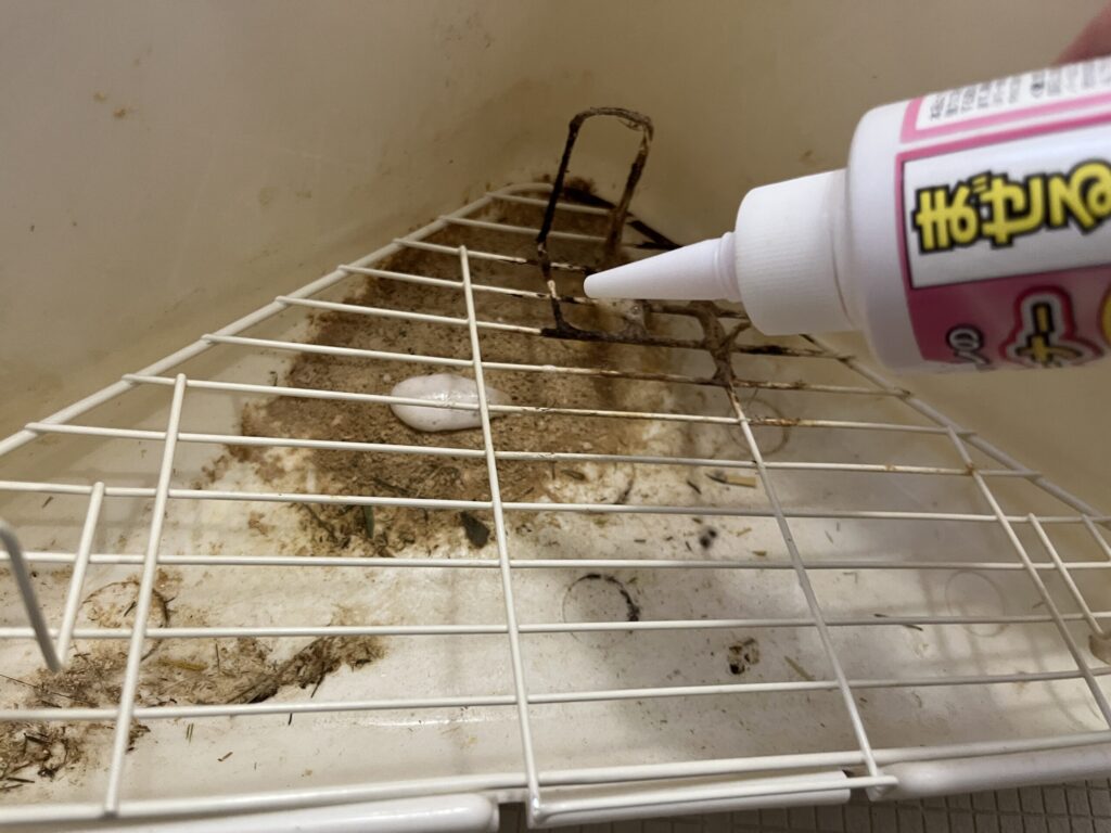 2、うさぎのトイレの尿石クリーナーをかけます