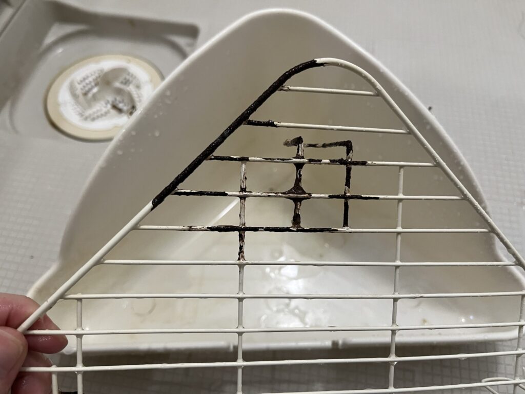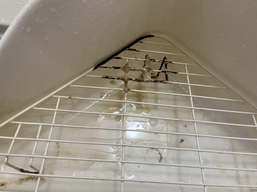 尿石の放置は不衛生なだけでなく、金属スノコ部分の腐食にもつながります